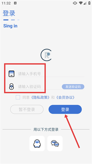 4、進(jìn)入登錄界面后,填寫【請(qǐng)輸入手機(jī)號(hào)】與【請(qǐng)輸入驗(yàn)證碼】,勾選協(xié)議后點(diǎn)擊【登錄】按鈕完成賬號(hào)登錄。