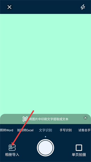 2、進(jìn)入文字識(shí)別操作界面后,點(diǎn)擊左下角的【相冊(cè)導(dǎo)入】按鈕,可選擇本地相冊(cè)中的圖片進(jìn)行文字識(shí)別處理。