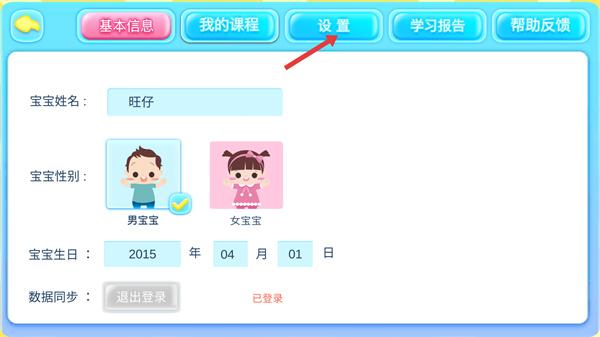3、進(jìn)入父母中心后,從【基本信息】標(biāo)簽頁(yè),切換至設(shè)置頁(yè)面。