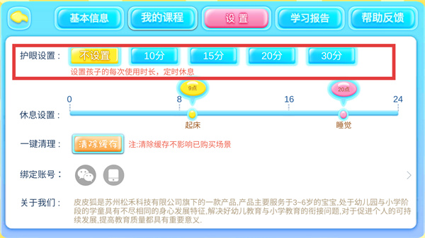 5、內(nèi)置護(hù)眼設(shè)置與休息提醒功能,科學(xué)管理使用時(shí)間,有效防沉迷,全方位呵護(hù)寶寶視力與健康成長(zhǎng)。