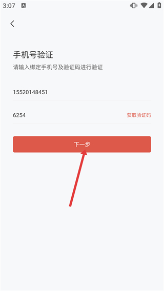 4、在填好手機(jī)號(hào)與驗(yàn)證碼的驗(yàn)證頁(yè)面,點(diǎn)擊【下一步】按鈕,即可推進(jìn)密碼找回或賬號(hào)驗(yàn)證的流程。