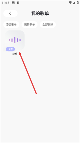 4、歌單創(chuàng)建完成后,【我的歌單】頁面會顯示新建的歌單(如【心動】),該歌單初始狀態(tài)顯示為【0首】,可后續(xù)添加音樂。