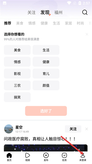 1、在APP主界面,點擊底部【未登錄】按鈕進入個人相關頁面。