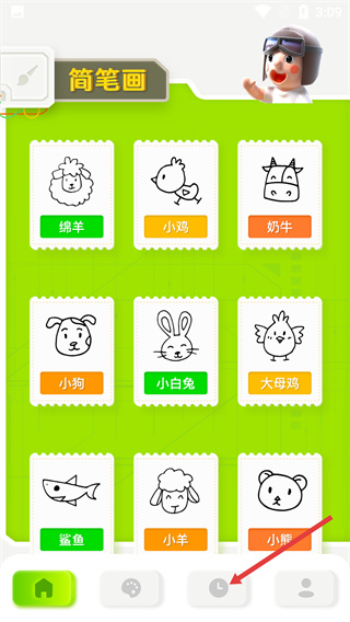 1、在APP主頁面,點擊底部對應(yīng)按鈕進入畫畫記錄頁面。