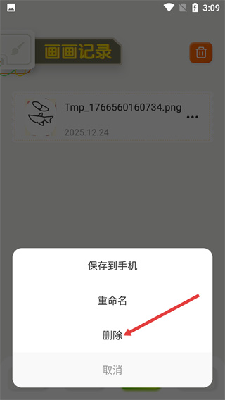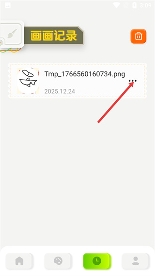 2、進入畫畫記錄頁面后,找到目標(biāo)記錄文件,點擊其右側(cè)的三點按鈕,即可喚起包含多項操作的功能菜單。