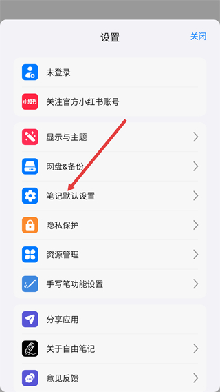2、進(jìn)入設(shè)置頁面后,點擊【筆記默認(rèn)設(shè)置】選項,進(jìn)入筆記默認(rèn)設(shè)置的配置界面。