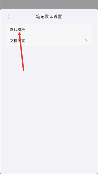 3、在筆記默認(rèn)設(shè)置頁面,點擊【默認(rèn)模板】選項,進(jìn)入默認(rèn)模板的選擇界面。