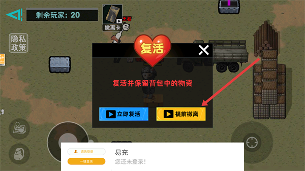 2、撤離失敗可選廣告復(fù)活或直接撤離,靈活應(yīng)對(duì)挫折,降低挫敗感,多種選擇自主掌控,失敗不氣餒,重拾信心再戰(zhàn)永不言棄。