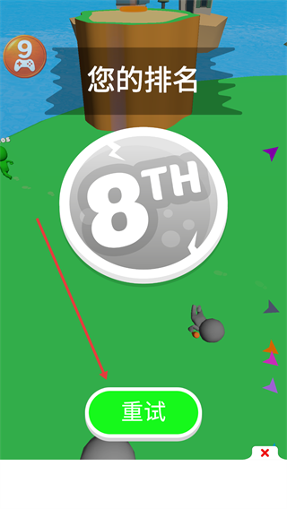 4、當(dāng)界面顯示您的排名時(shí),點(diǎn)擊【重試】按鈕可重新進(jìn)入對(duì)局,沖擊更高排名。
