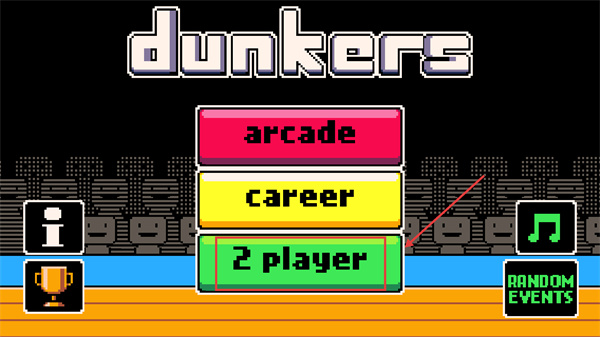 1、進入【dunkers】主界面后,可選擇【2-player】模式與好友對戰(zhàn),也可通過【career】模式推進劇情。