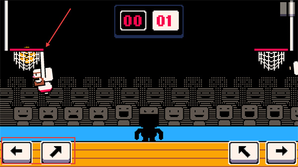 3、按方向鍵控制球員移動,借助按鍵躍起后扣籃得分。