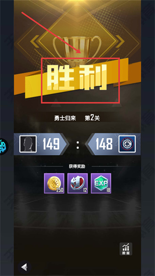 4、獲勝后可通過獲取【250】金幣-【12】道具-【18】EXP獎勵,積累資源推進游戲進度。