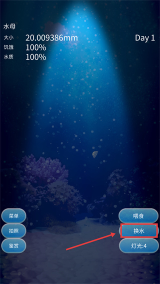 2、定期點擊【換水】功能,保持【水質(zhì)-100%】的良好環(huán)境。