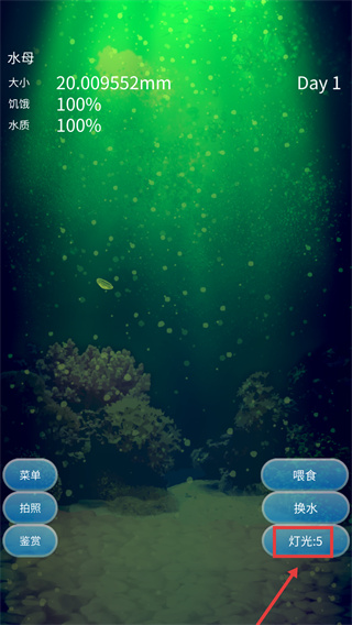 3、調(diào)整【燈光:5】等燈光參數(shù),不同燈光模式可能影響【水母】的狀態(tài),可嘗試切換以優(yōu)化培育效果。