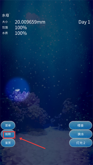 4、使用【拍照】功能記錄【水母】的成長狀態(tài),同時可留存不同階段的畫面,便于追蹤成長數(shù)據(jù)。
