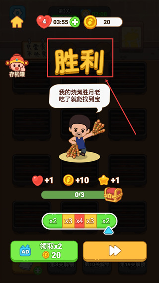 3、達成【勝利】條件后,可獲得【愛心+1】【金幣+10】【星星+1】獎勵。