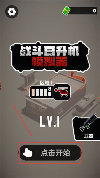1、進(jìn)入【戰(zhàn)斗直升機(jī)模擬器】的【區(qū)域1】界面,點(diǎn)擊“點(diǎn)擊開始”按鈕啟動(dòng)【LV.1】關(guān)卡。