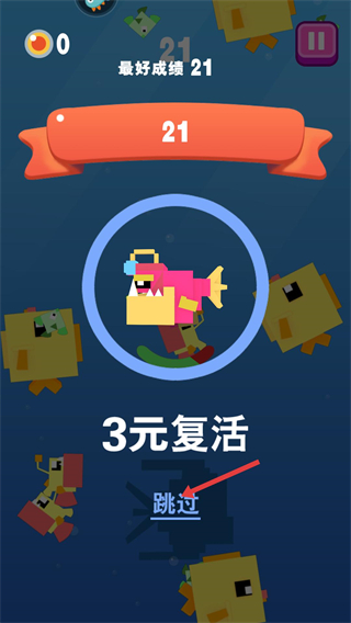 4、游戲結(jié)束后會(huì)顯示當(dāng)前得分與最好成績(jī),可選擇【跳過(guò)】重新開(kāi)始游戲,建議重新開(kāi)始積累更高分?jǐn)?shù)。