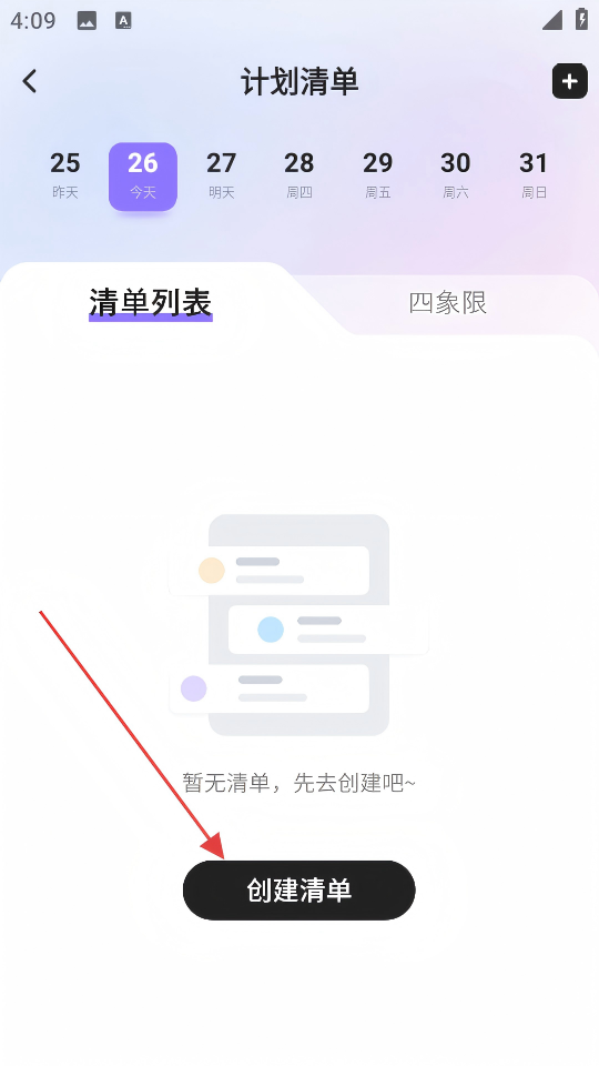 2、計劃清單頁無內(nèi)容時,點擊【創(chuàng)建清單】開啟計劃編輯流程。