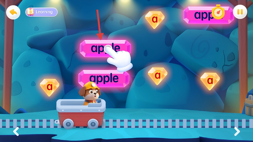 4、在游戲關(guān)卡中點擊手指指向的【a】開頭方塊。