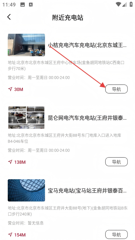 3、附近充電站列表選【小桔充電汽車充電站】,點擊【導(dǎo)航】,啟動路線指引。