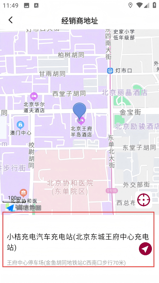 4、進入導(dǎo)航頁查看【小桔充電汽車充電站】地址,按地圖定位及導(dǎo)航,前往充電。