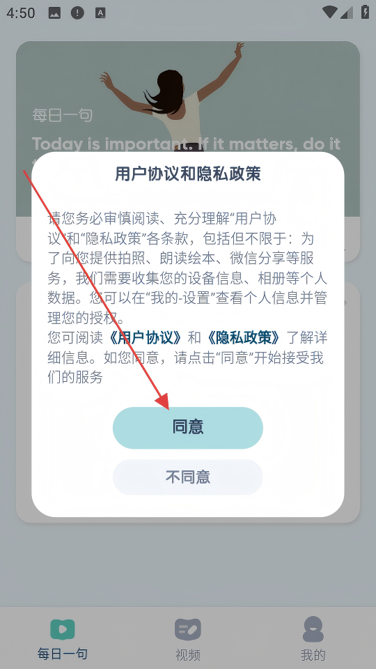 1、在用戶協(xié)議彈窗點(diǎn)擊【同意】,接受服務(wù)條款。