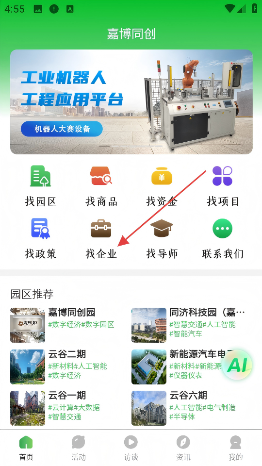 1、首頁(yè)點(diǎn)擊【找企業(yè)】,進(jìn)入企業(yè)推薦列表。