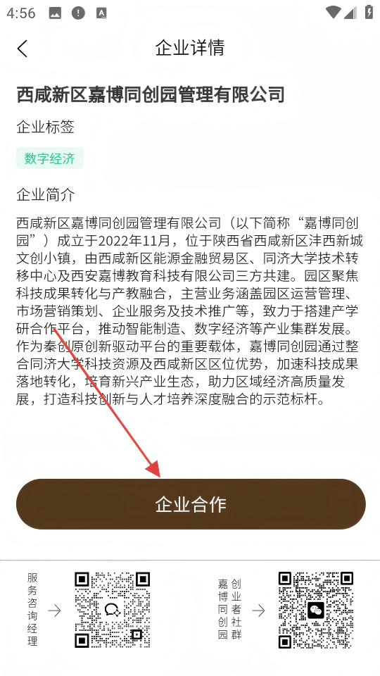 3、點(diǎn)擊【企業(yè)合作】按鈕,進(jìn)入合作表單頁(yè)。