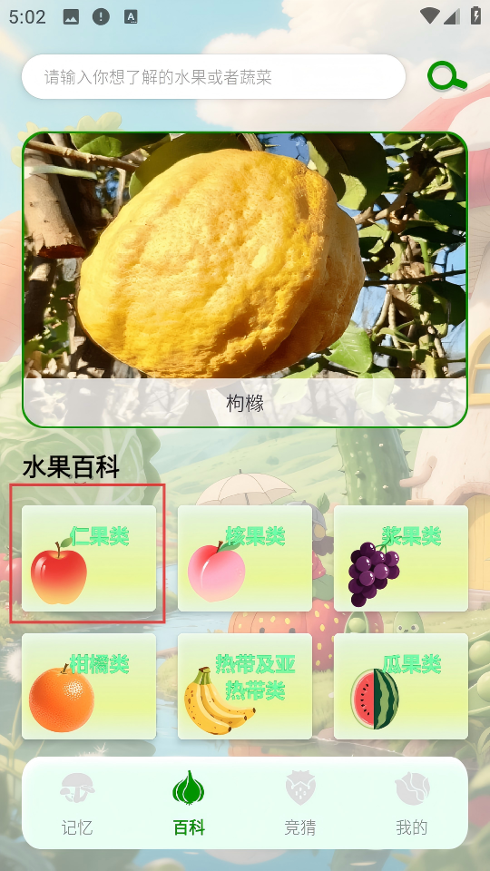 3、選擇水果分類(如仁果類),進(jìn)入分類詳情。
