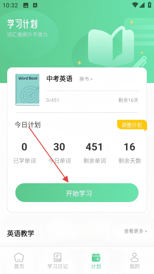 1、首頁點(diǎn)擊底部【計(jì)劃】,進(jìn)入學(xué)習(xí)計(jì)劃頁面。