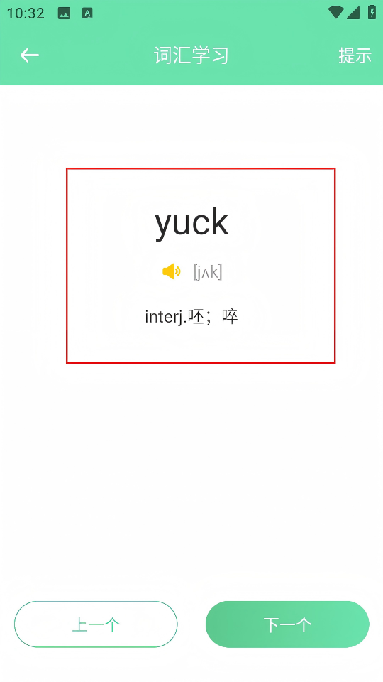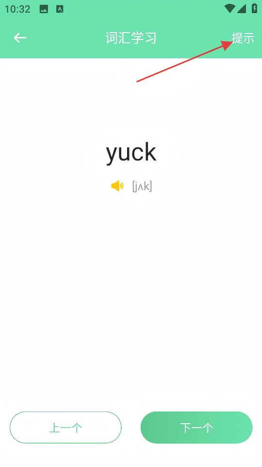 3、點(diǎn)擊右上角【提示】,查看單詞釋義。