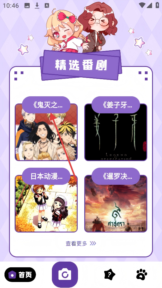 1、在精選番劇區(qū)域點(diǎn)擊【鬼滅之刃】對應(yīng)的封面,進(jìn)入該動(dòng)漫詳情頁。