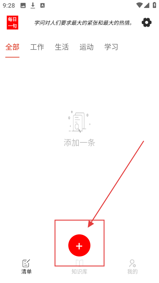 1、在APP首頁(yè),有“全部”“工作”等分類(lèi),點(diǎn)擊底部紅色“+”號(hào),可添加任務(wù)呢。