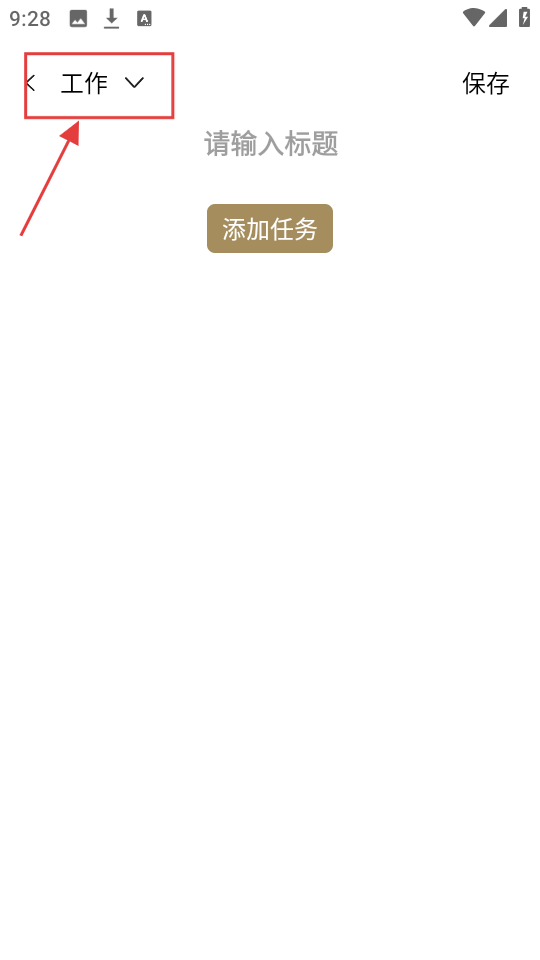 2、進(jìn)入添加任務(wù)頁(yè)面,左上角可選擇分類(lèi),默認(rèn)是【工作】,能輸入標(biāo)題,還能添加任務(wù),超方便的。