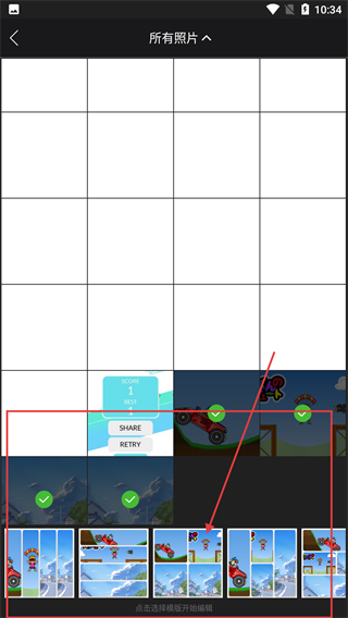 3、在所有照片頁(yè)面,勾選需要拼圖的照片,選好后可進(jìn)入模板拼圖界面。