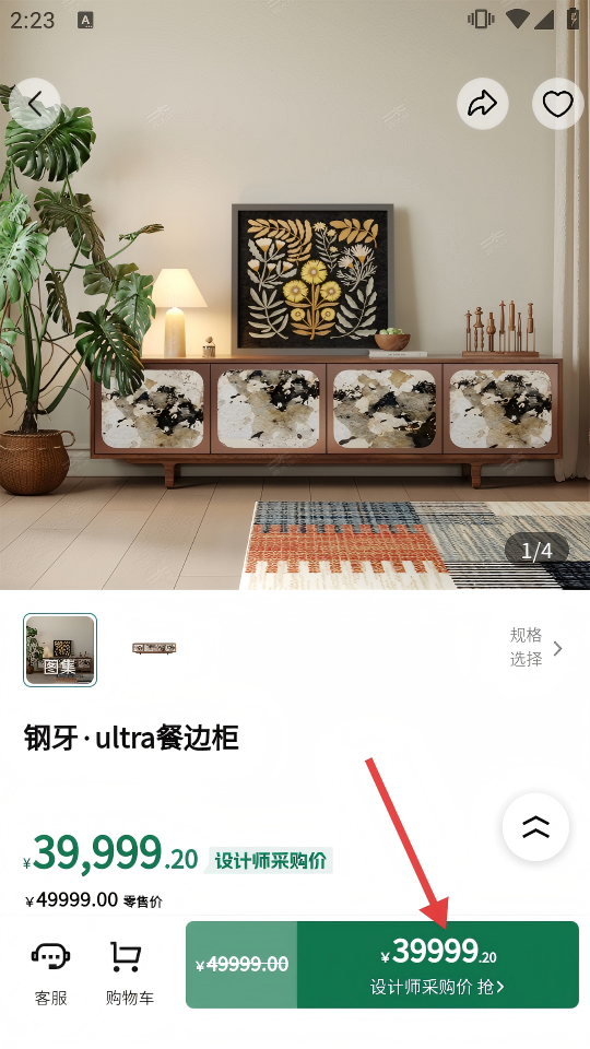 4、可看到設(shè)計(jì)師采購(gòu)價(jià)【¥39,999.20】,還能進(jìn)行【規(guī)格選擇】等操作。