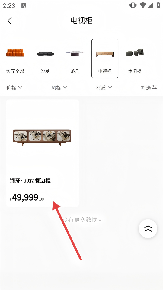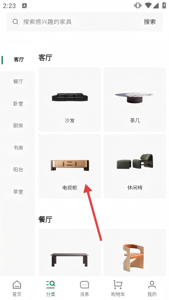 2、進(jìn)入分類頁(yè)面后選擇【客廳】,在客廳分類里點(diǎn)擊【電視柜】。