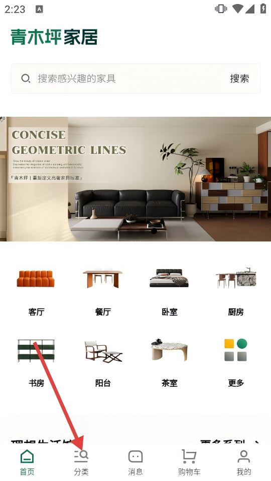 1、打開(kāi)青木坪家居,點(diǎn)擊底部【分類】。