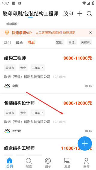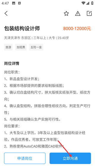2、在附近崗位列表中選擇【包裝結(jié)構(gòu)設(shè)計(jì)師】,進(jìn)入崗位詳情頁。