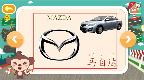 4、繼續(xù)學(xué)習(xí)【馬自達(dá)(MAZDA)】的車(chē)標(biāo)、車(chē)型及拼音,完成車(chē)標(biāo)學(xué)習(xí)流程。