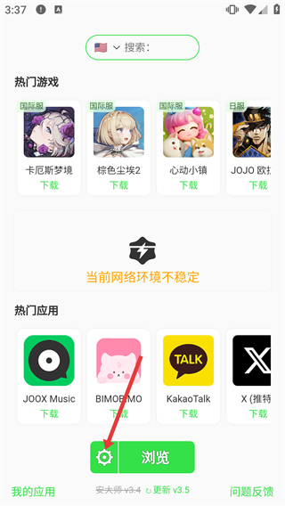 2、點(diǎn)擊底部設(shè)置圖標(biāo),進(jìn)入設(shè)置相關(guān)頁(yè)面,可進(jìn)行安裝設(shè)置等操作。