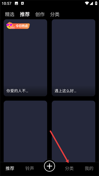 2、在首頁點擊底部【分類】選項,可進入分類頁面,按類型篩選鈴聲資源。