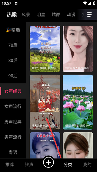 3、在分類頁面選擇對應(yīng)類別,找到目標鈴聲內(nèi)容,點擊進入該鈴聲的詳情頁面。