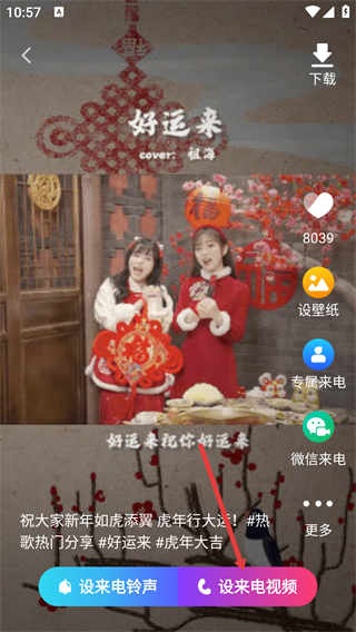 4、在鈴聲詳情頁,可點擊【設(shè)來電鈴聲】或【設(shè)來電視】按鈕,完成對應(yīng)功能的設(shè)置。