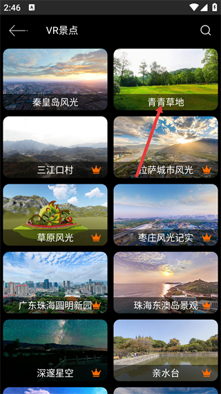 3、在VR景點列表中,找到【青青草地】選項并點擊,即可進(jìn)入該景點對應(yīng)的VR實景瀏覽頁面。