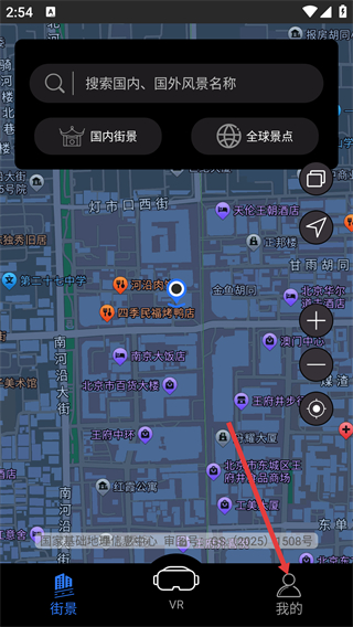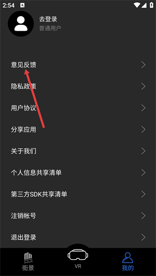 1、在街景頁面,點(diǎn)擊底部導(dǎo)航欄的【我的】選項(xiàng),可進(jìn)入包含意見反饋等功能的個(gè)人中心頁面。