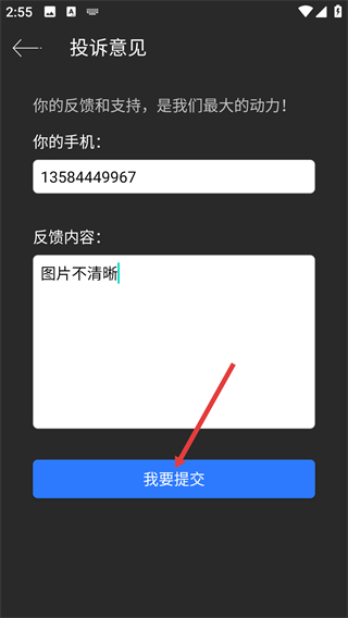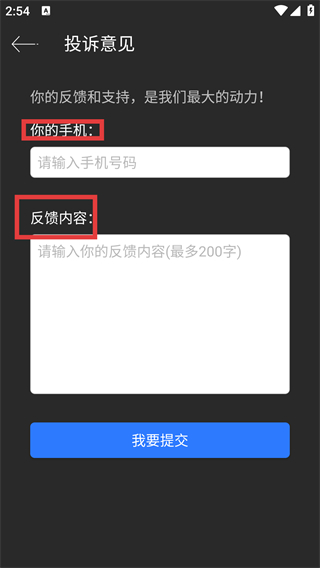 4、完成號(hào)碼與反饋內(nèi)容的填寫后,點(diǎn)擊頁面底部的【我要提交】按鈕,即可完成意見反饋的提交。