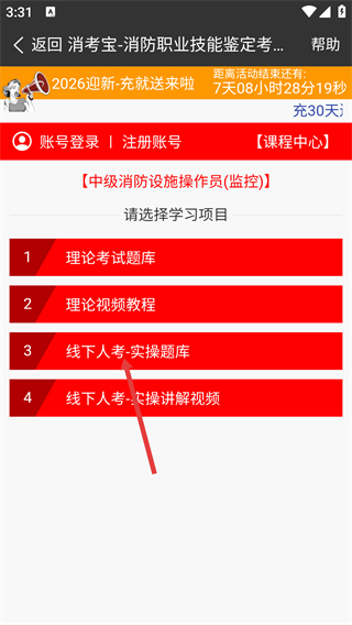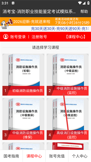 2、進(jìn)入課程中心頁(yè)面后,選擇目標(biāo)課程(如中級(jí)消防設(shè)施操作員(監(jiān)控)),進(jìn)入該課程對(duì)應(yīng)的學(xué)習(xí)項(xiàng)目選擇頁(yè)面。