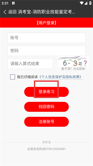 4、進(jìn)入用戶登錄頁(yè)面,依次填寫賬號(hào)、密碼、驗(yàn)證碼并勾選協(xié)議后,點(diǎn)擊【登錄練習(xí)】按鈕,即可進(jìn)入對(duì)應(yīng)學(xué)習(xí)內(nèi)容。
